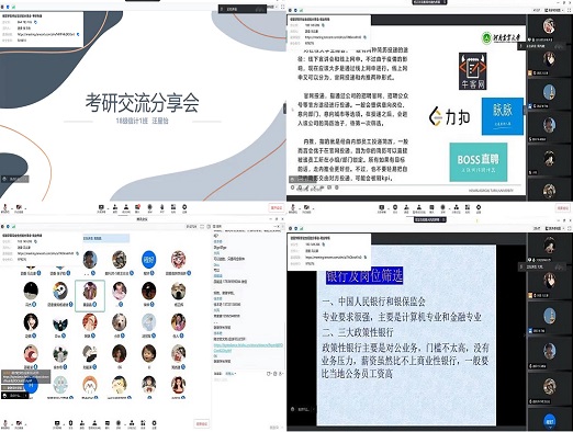 于线上分别开展了考研交流与就业分享会。院团委书记、2019级辅导员老师张玥、2018级辅导员老师王肖肖、冯杰出席会议。2019级部分同学参加会议。本次会议共邀请12位2018级同学进行经验分享交流。