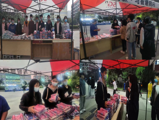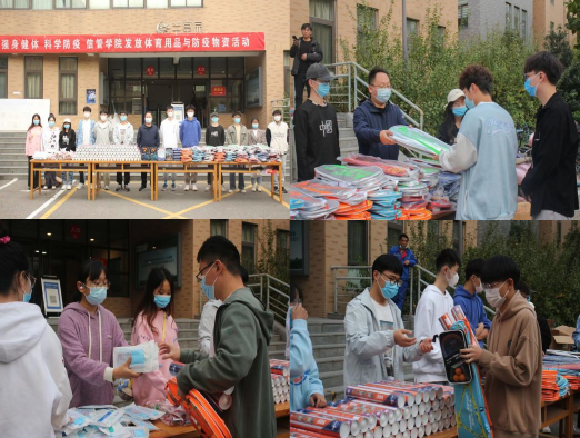 在龙子湖校区和桃李园学生公寓为学生们发放600多件体育用品和各类防疫物资。