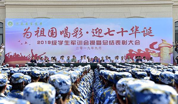 9月30日上午,我校“为祖国喝彩·迎七十华诞”2019级学生军训会操暨总结表彰大会分别在龙子湖校区和许昌校区举行。sm调教