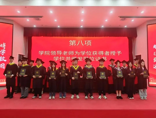 获得硕士学位学生名单》。随后,院领导为2025届优秀毕业生代表颁发证书,为校友联络员代表颁发聘书,为学位获得者授予学位并颁发学位证书,为全体毕业生发放毕业纪念品。