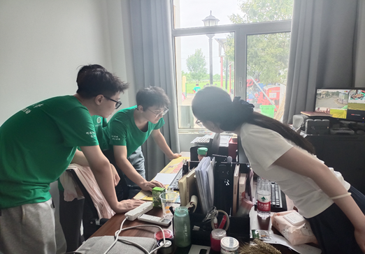 “电脑120”团队针对前期调研发现的乡村居民普遍面临的电脑运行缓慢、故障维修难及智能科技知识匮乏等问题,在清丰县张庄里村支书协助下,迅速组织为周边村民提供免费电脑检修维护服务,短短一下午即接收十余台故障设备,团队成员分工协作,高效解决了硬件软件问题并进行个性化优化设置,获得村民好评。同时,团队主动延伸服务,在科技小院设置互动区,通过演示、一对一辅导和发放宣传材料,向村民普及智能手机应用、网络安全知识和基础操作技能,有效提升其数字素养和防范意识。为深入理解科技兴农涵义,团队还参观了当地农耕机械基地,实地考察无人驾驶拖拉机、大型收割机及农用无人机等先进设备,并与技术人员交流探讨智能农机应用与优化,深刻体会到科技对现代农业效率和农民劳作的巨大提升。