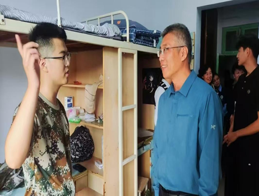 新生抵达宿舍后,学院领导老师专程走访,关切询问住宿情况与适应状态,鼓励大家尽快融入新环境,让新生在关怀中感受到家的温暖,也为开启大学生活增添了信心与动力。