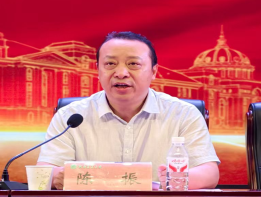 院长陈振在致辞中介绍了学院发展概况与学科优势,在开学典礼上向新生提出三点希望:以时代之名立定力,做开拓者;以勤恳之态蓄毅力,做奋斗者;以明德之道养动力,做追梦者。勉励同学们珍惜时光、夯实基础、学有所成。