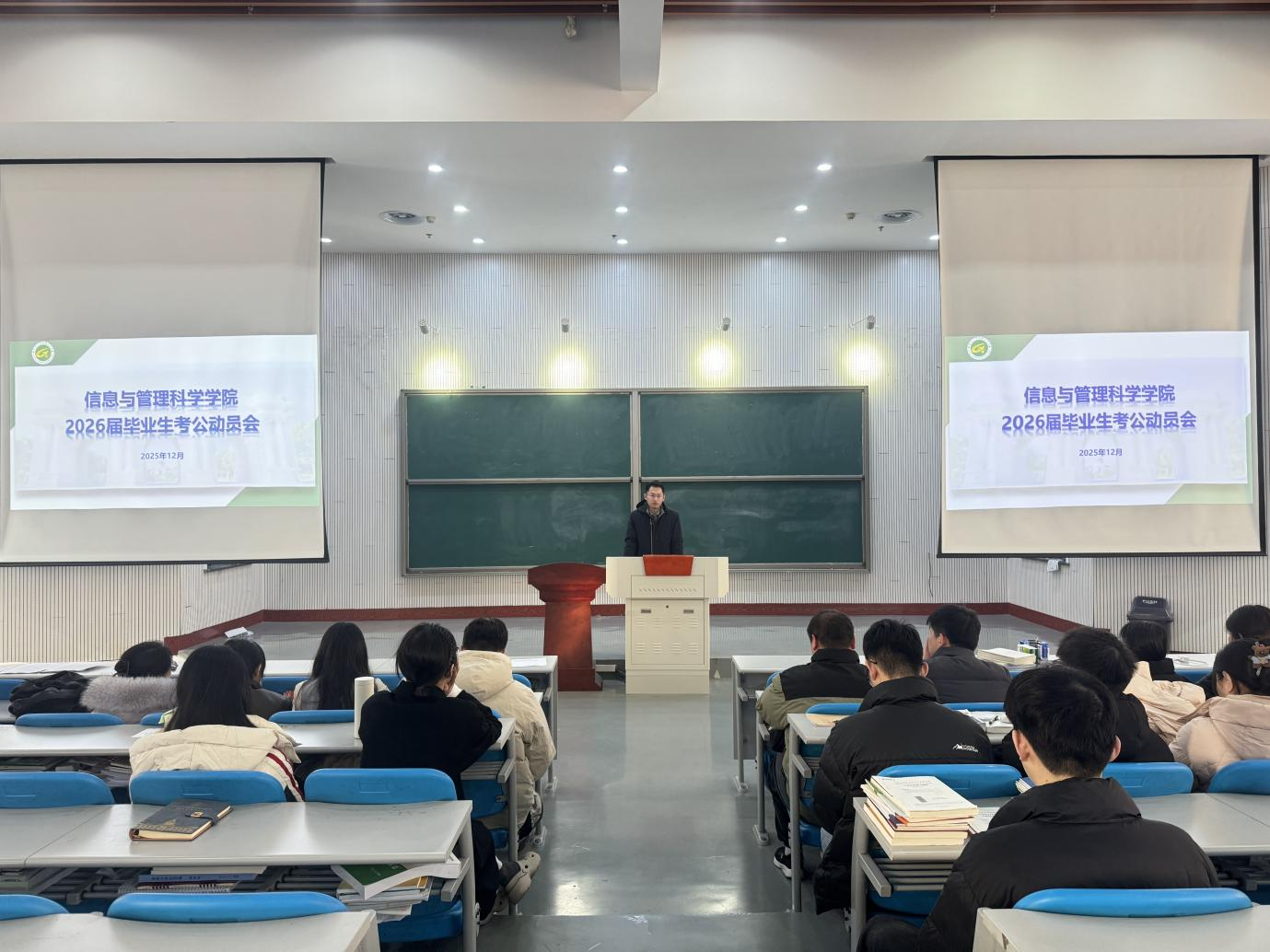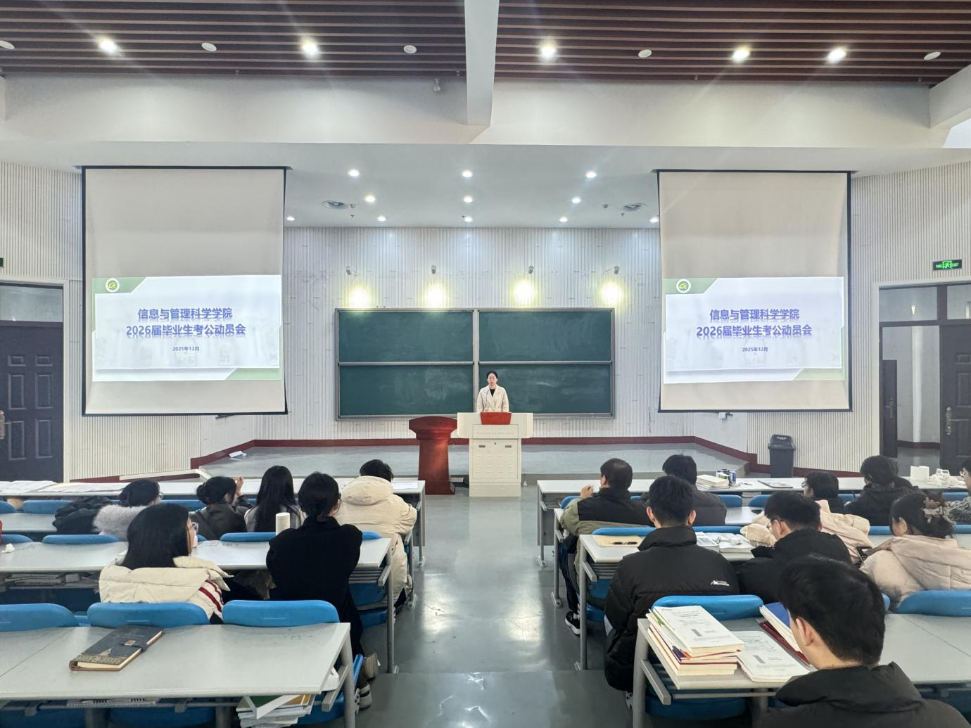在繁塔楼大教室二召开2026届毕业生考公动员大会。院团委副书记、研究生辅导员郭潇出席本次会议,会议由本科毕业班辅导员倪天娇主持,2026届全体毕业生参加。