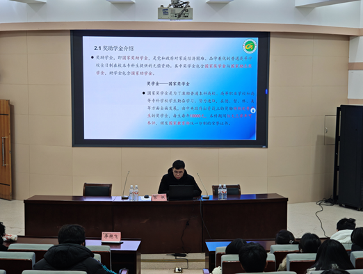 于文化路校区300人报告厅召开新生资助两节课宣讲会。25级全体学生参会,本次活动由院团委副书记李艳飞主持,院团委辅导员张枫主讲。